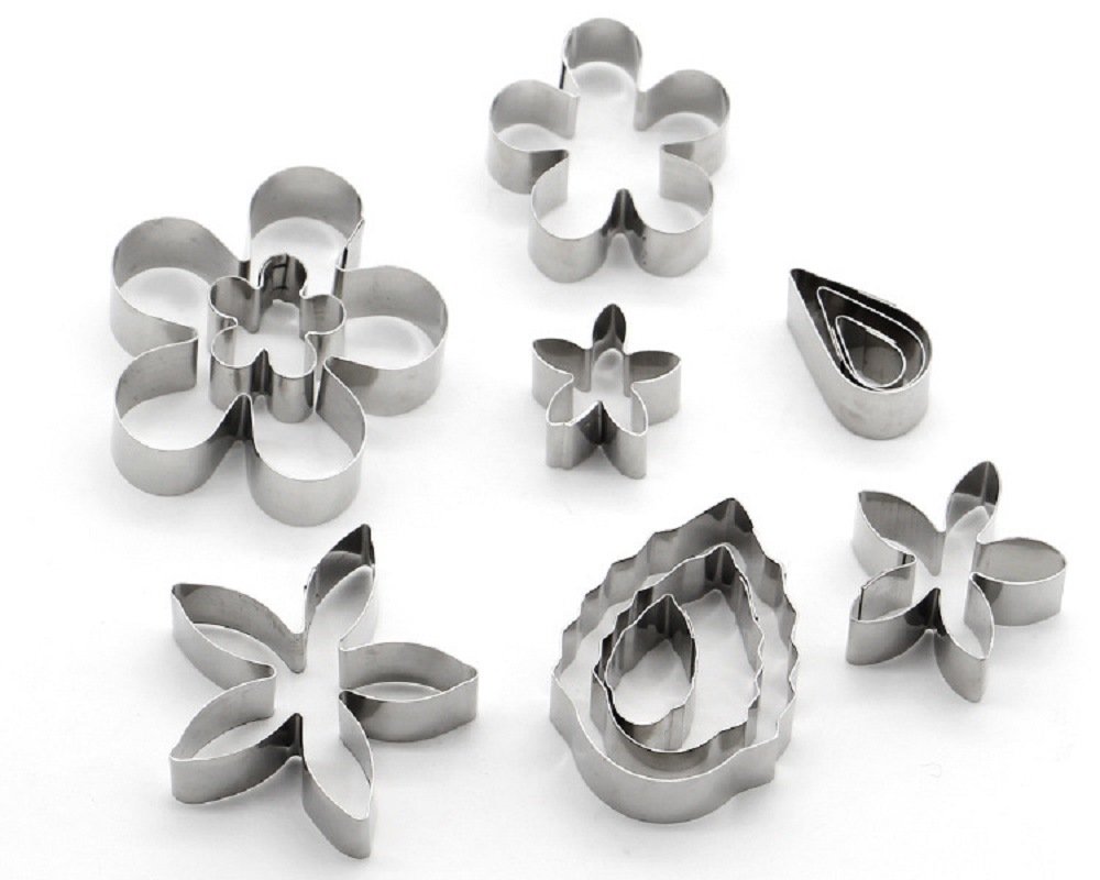 Made of 18/8 commercial grade 304 stainless steel, the 12 Piece Small Flower & Leaf Shaped Cutter Set has higher quality than the cheap stainless steel flower & leaf cutters.