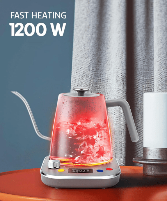 [Fast 1200W Heating] - -Experience rapid boiling with our high-power 1200-watt heating base. It boils 0.8 liters of water in just about 4 minutes, saving your time and providing efficient performance for your daily brewing needs.