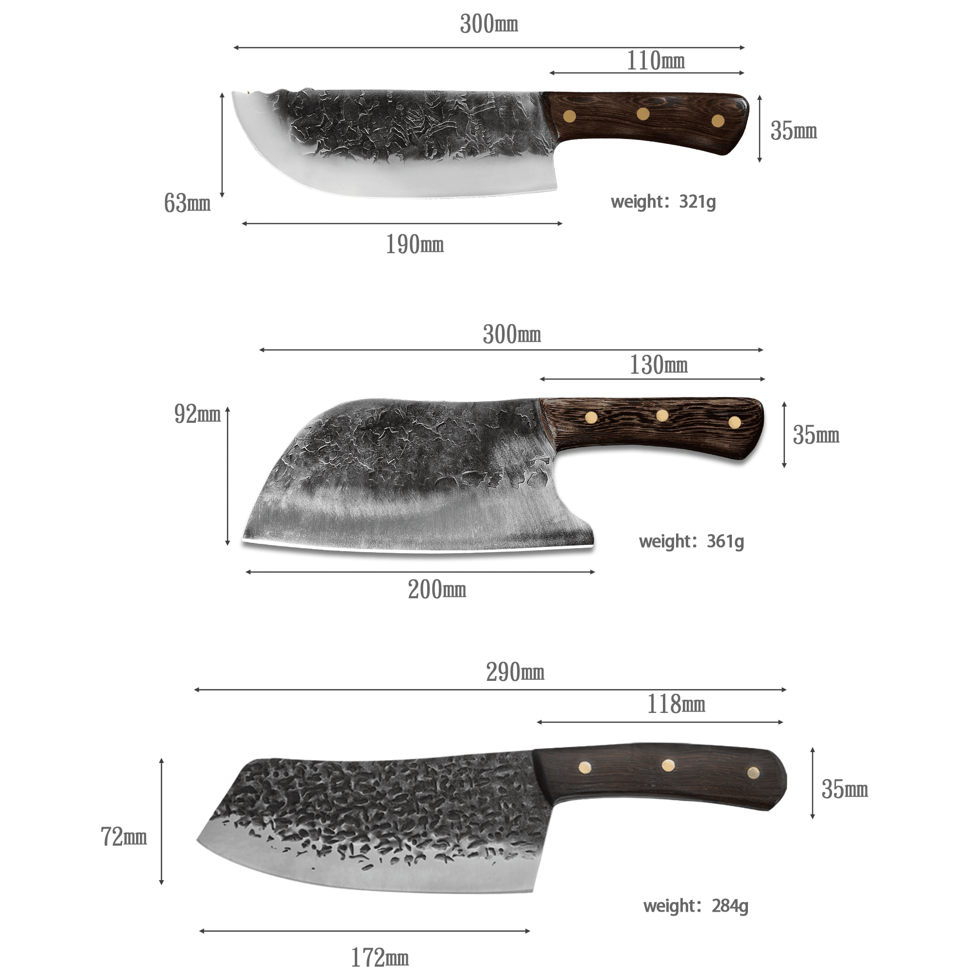 Material: chef's knife blades are made of high-quality carbon steel imported from germany, which is rust-proof, easy to maintain, and keeps the edge sharp for a long time.