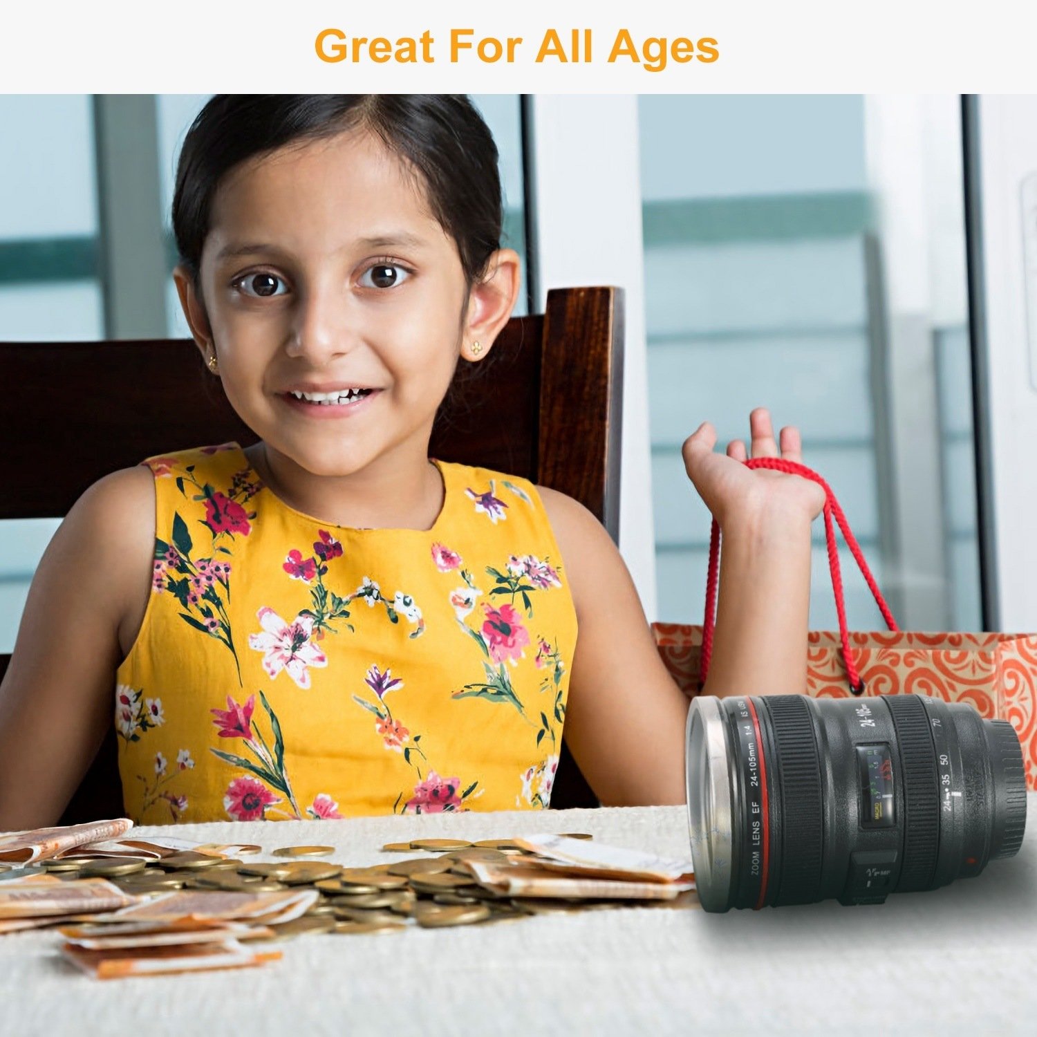 **MULTI-PURPOSE & BEST GIFT*:This camera lens mug is practical to use as a cup; ashtray; money box and pen holder. You can use it to drink Coffee; Milk; Water; Fruit juice; Ice-cream; etc. Also it's an amazing gift for your friends; classmate; colleagues; relative.