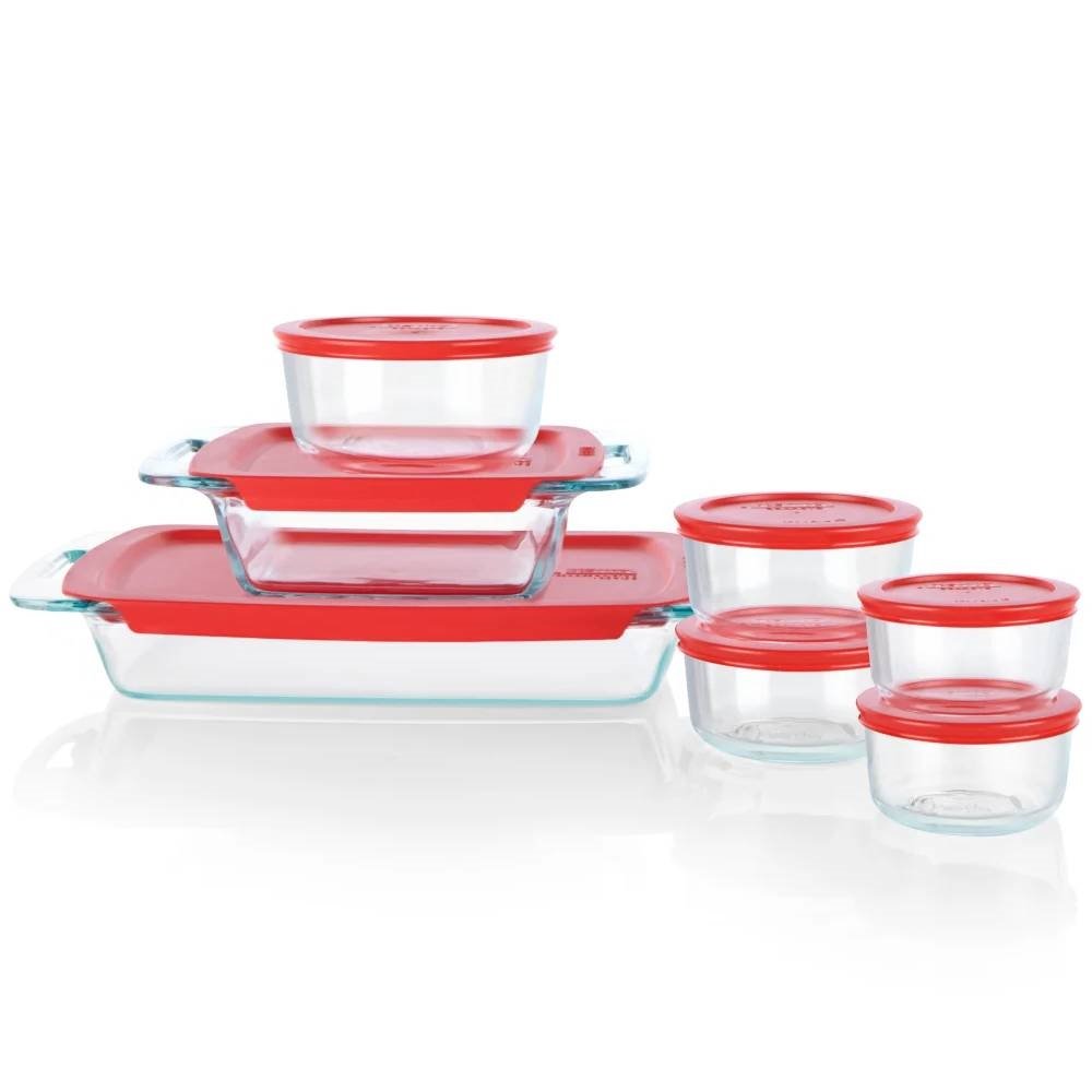 • 14-Piece Glass Bakeware Food Storage Container Set with Red Plastic Lids