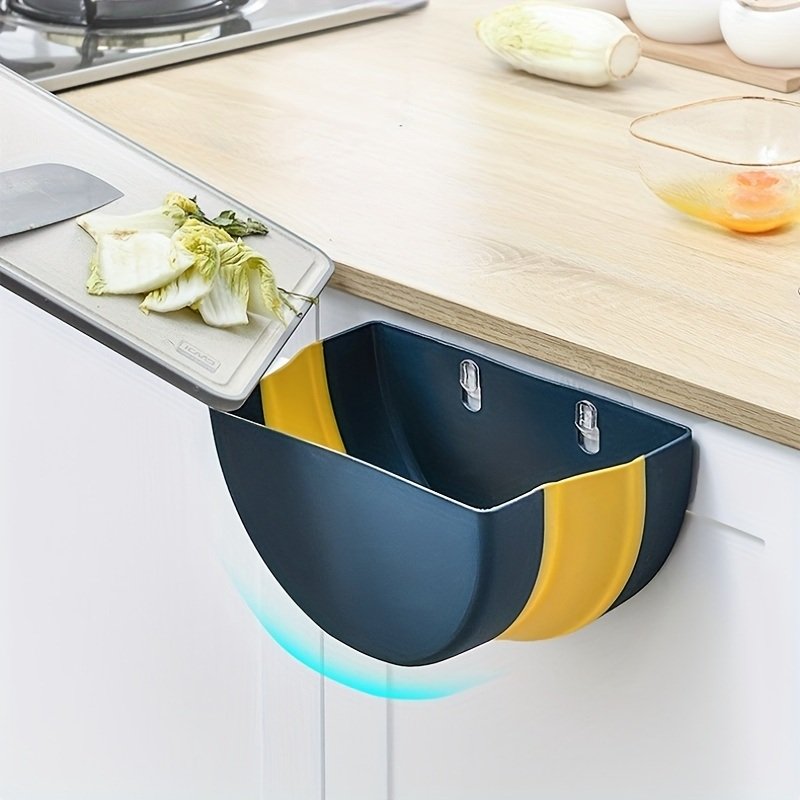 Details:1pc Kitchen Garbage Bin; Wall Mounted Waste Bin; Hanging Kitchen Trash Can; Foldable Waste Bins; Small Compact Garbage Can For Cabinet Kitchen