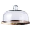 1pc Pastry Plate WithTransparent Glass Cover; Fruit Plate With Glass Top; Small Circle Wooden Tray With Glass Lid