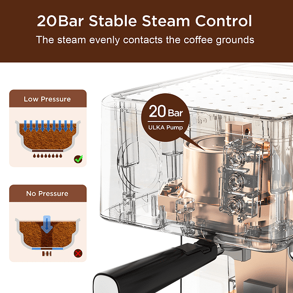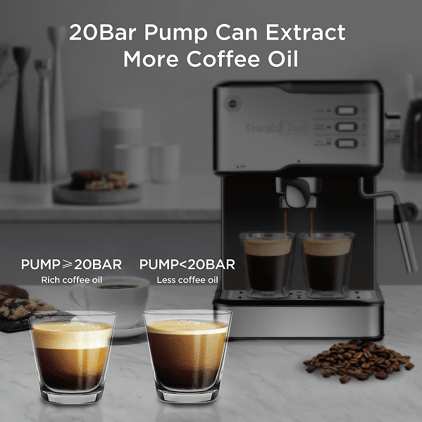 20 BAR high-speed pump: semi-automatic espresso machine, 20 BAR professional energy-saving pump, strong pressure extraction of coffee.(Not including glasses and milk cans).