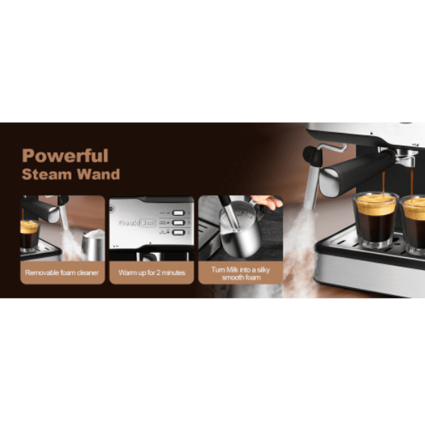 Professional milk foaming bar: use hot steam bar for cappuccinos and lattes. Steam bar rotation degree, can better produce silky milk foam.