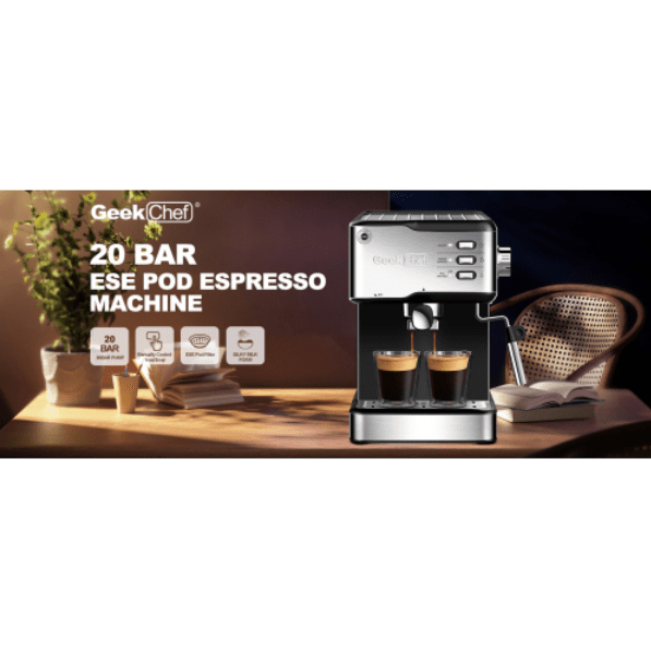 SKU: W100263724 950W Semi-automatic coffee maker 20Bar Espresso machine is compatible with ESE POD capsule filter and milk foam starter steam bar 1 cup / 2 cup, electronic button powder hammer 51mm touch induction steam type with foam starter 1.5L water tank