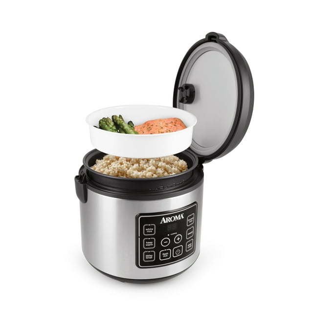 • Aroma programmable rice cooker has a 15-hour delay timer for flexible meal planning