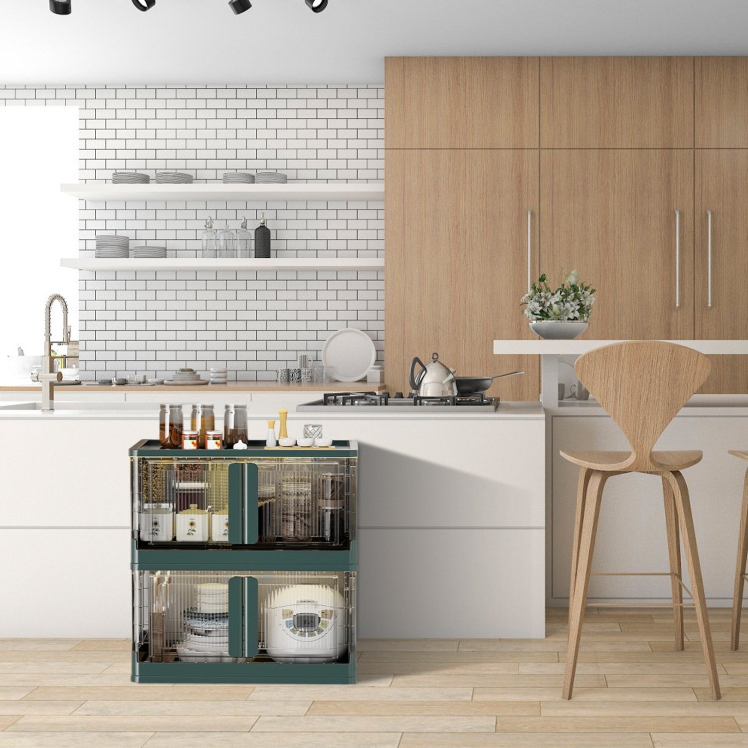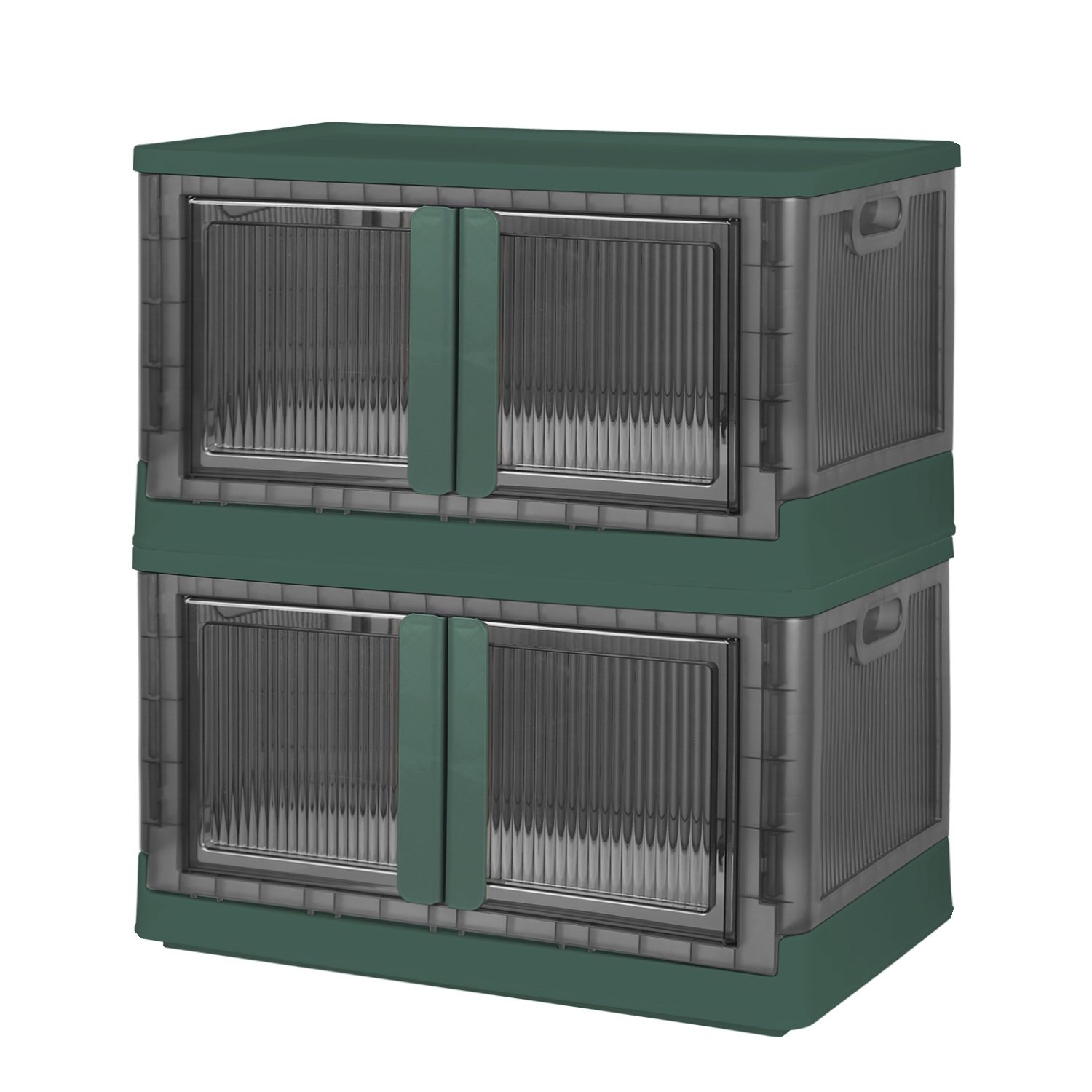 *Easily Fetch Items From Top & Front*:The folding storage organizer is able to open in two ways. You can open lid on the top or open from the front door. The front door built in lock buckles; rotating the handles in and out to control the doors lock and unlock; ensure the doors not open when moving this cabinet. The front door makes it easy to access to everything inside without having to pull everything down or removing the things on the top lid. Top cover keeps things from being exposed to dust.