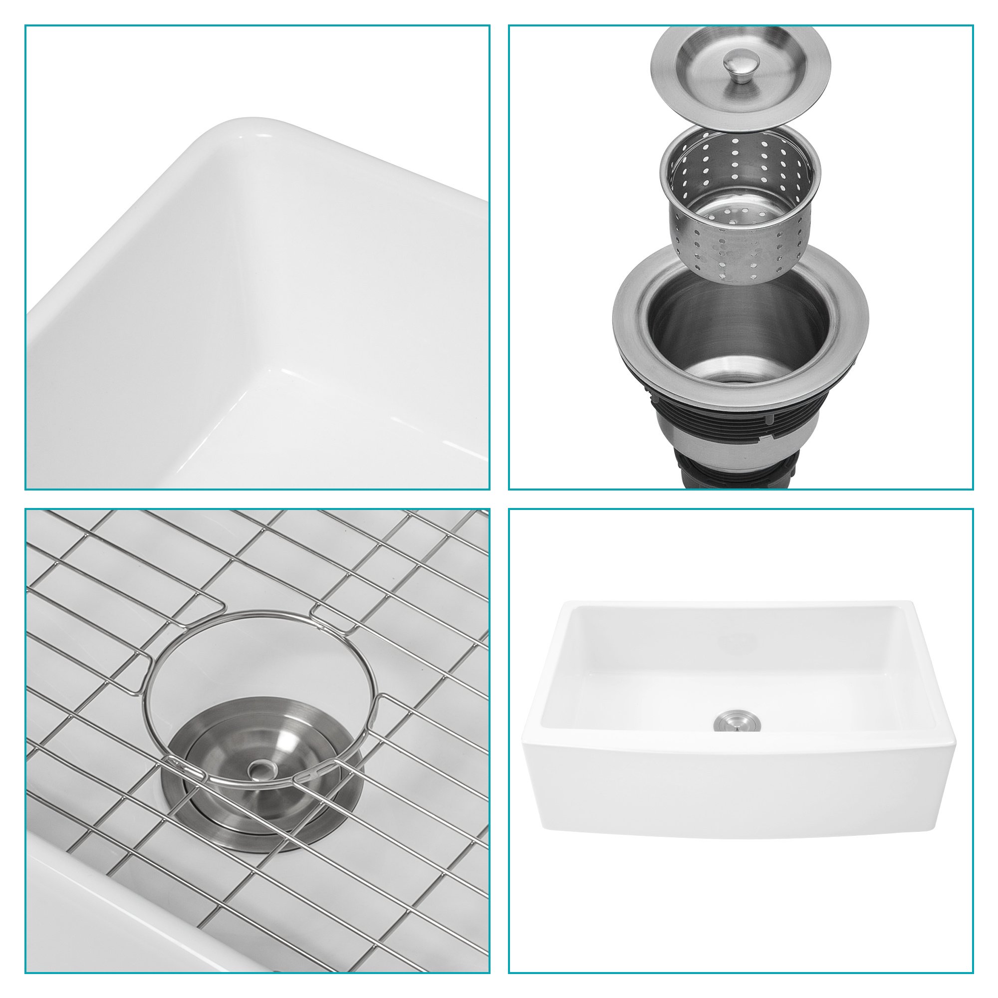What's in the Package --Include a 30 inch farmhouse kitchen sink, 304 stainless steel dish grid, basket strainer.