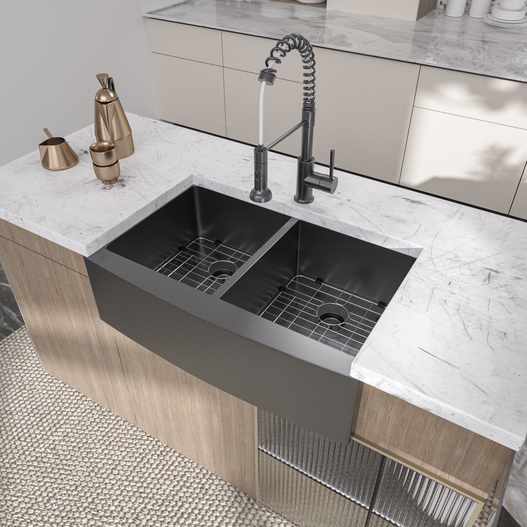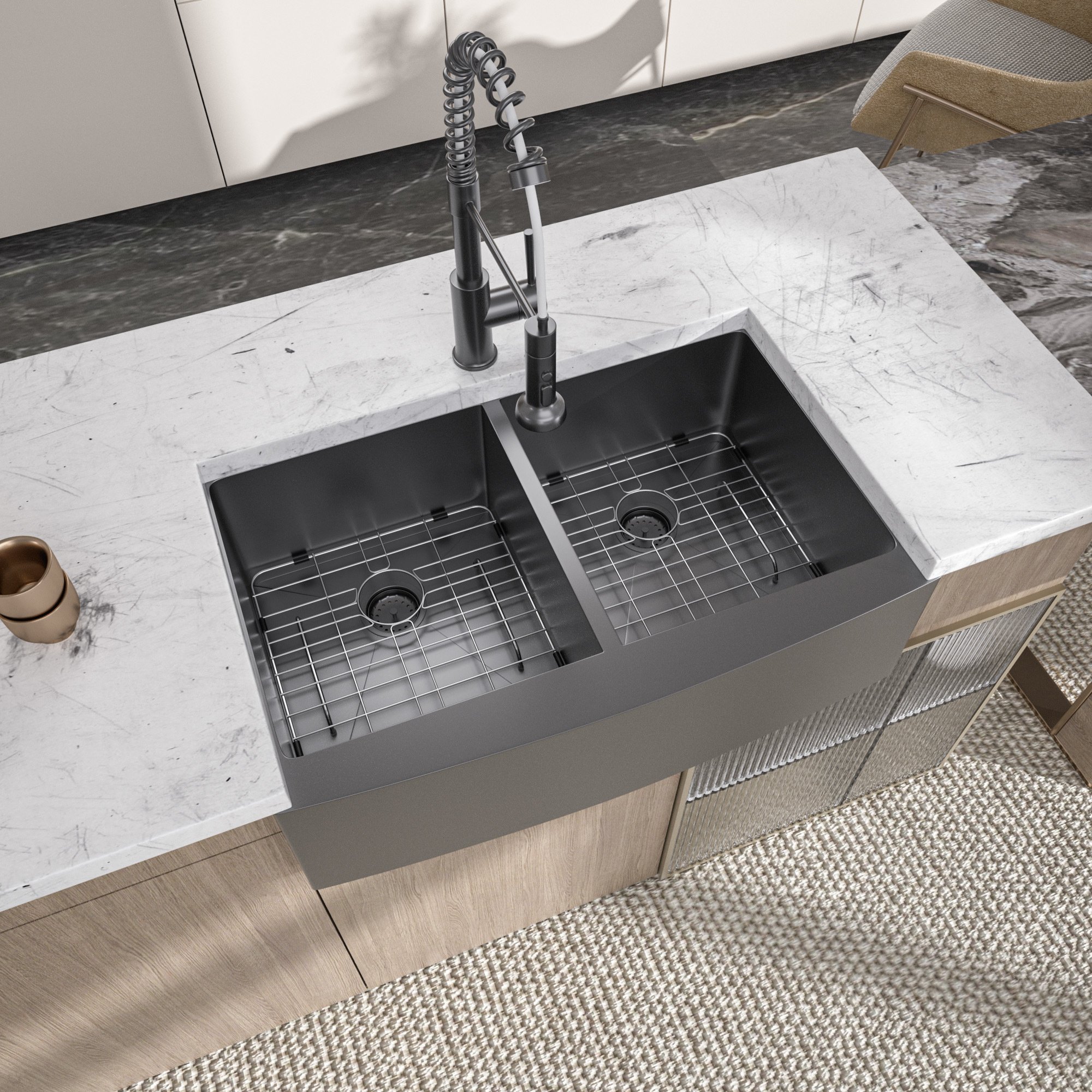 Home > 33"x21" Gunmetal Black Farmhouse Stainless Steel Kitchen Sink