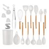 *Space-saving & Easy To Clean*:This kitchen cooking utensils set comes with a utensil holder,keep your kitchen countertop organized and tidy. Easy to clean by hand and rinse it under running water,too. You don't have to struggle cleaning your silicone spatulas after whisking an egg,spreading chocolate on a brownie or clamping meat from grill. Convenient hooks enable you to hang and air dry. Kitchen must haves for mothers,foodies and chefs!