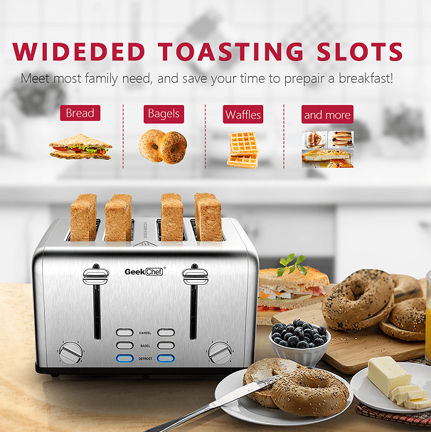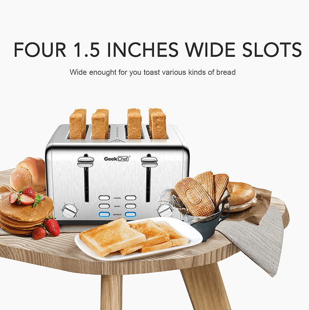 1.5-inch super wide 4-slot toaster: Ultra wide 4-slice toaster, thin bread, thick bagels, English muffins!