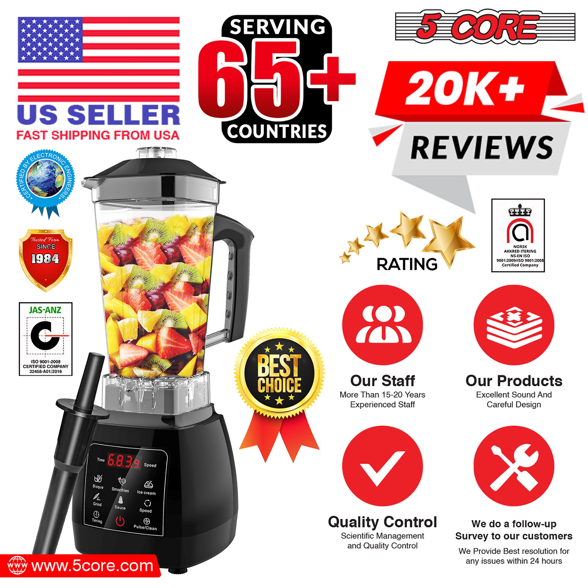 Transform the way you create delicious recipes with the 5 Core state-of-the-art countertop kitchen blender. Equipped with modern LED touchscreen controls, this blender not only looks sleek but also ensures easy cleaning. The five program settings provide consistent results and offer convenience. At 5 Core, Customer satisfaction is our priority—a proven track record of delivering the highest quality product since 1984. |