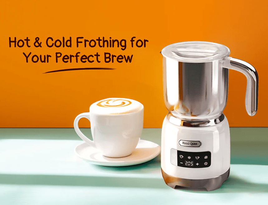 [Hot and cold foaming] -Hazel Quinn, the milk foam appliance has 4 adjustable temperatures to provide your perfect foam with-45°C / 55°C / 65°C and cold foaming. Great for making hot and iced coffee for all your beverage needs.