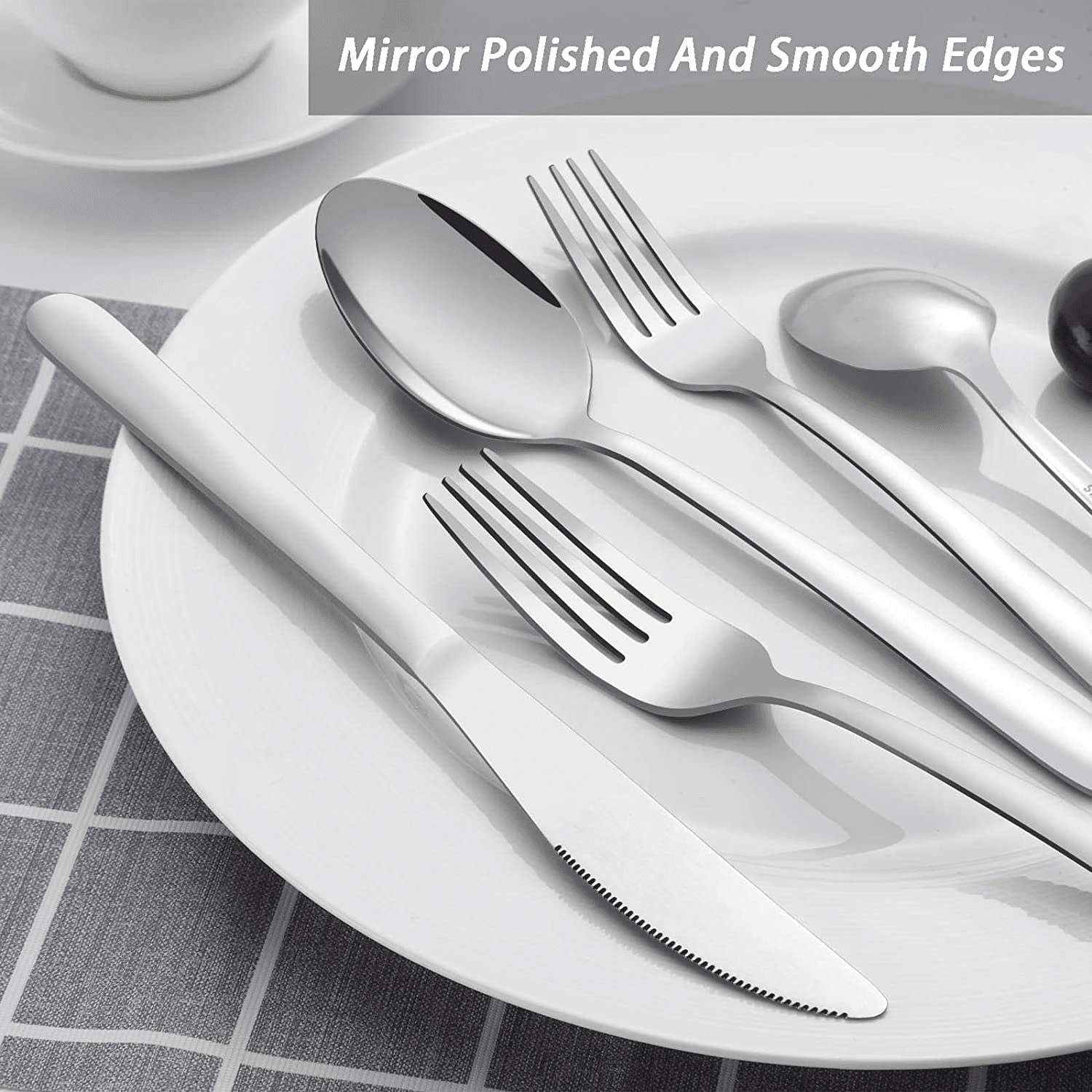 ✨[ergonomic design]the curve of our silverware set handles is designed according to the posture of the hand. Besides, the flatware set has appropriate weight and perfect balance ensure maximum comfort while using