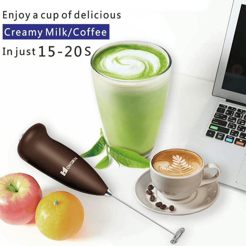 This Handheld Milk Frother and Foam Maker is the convenient home whisk that lets you create your favorite cafe drinks at home for a fraction of the cost.