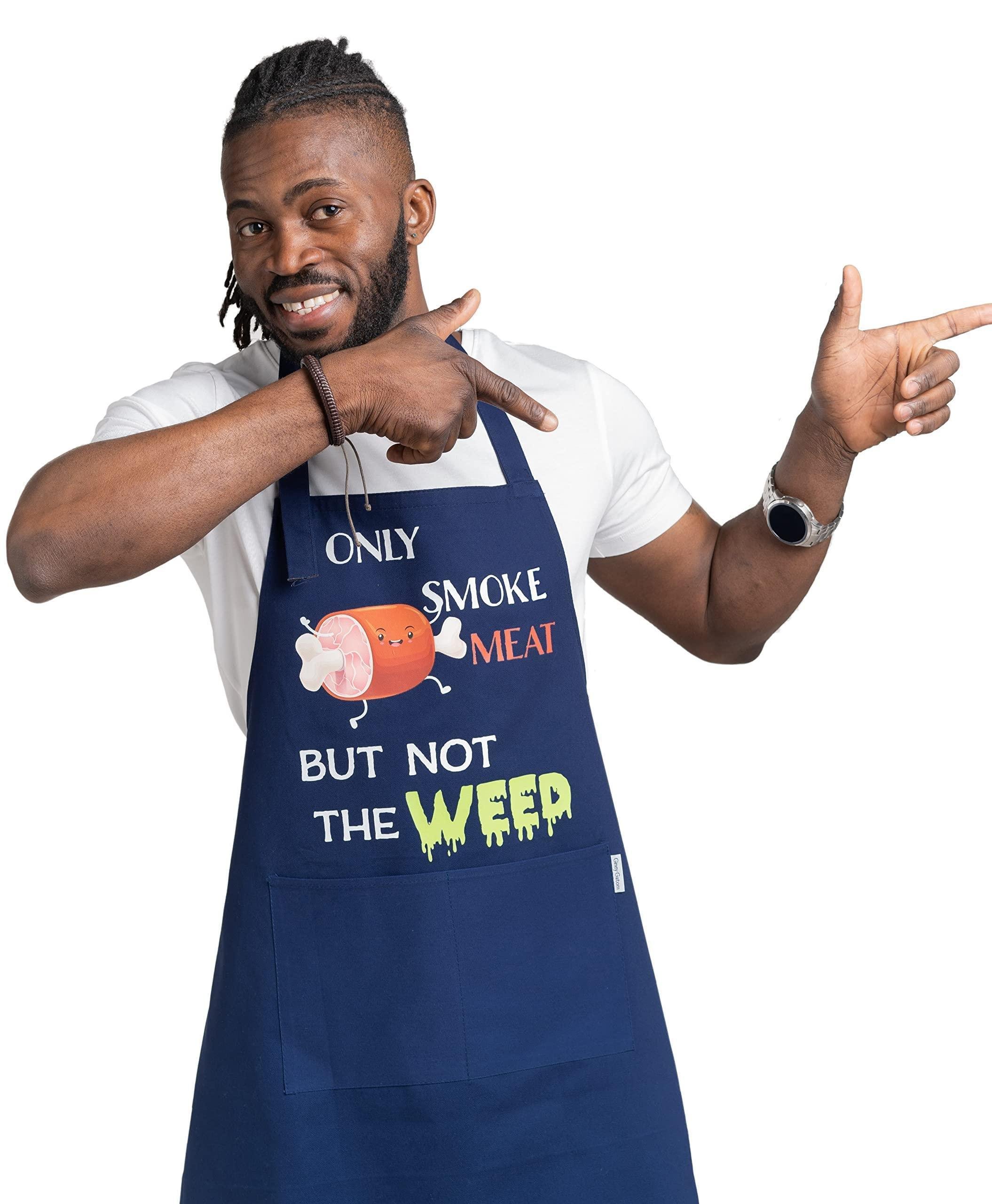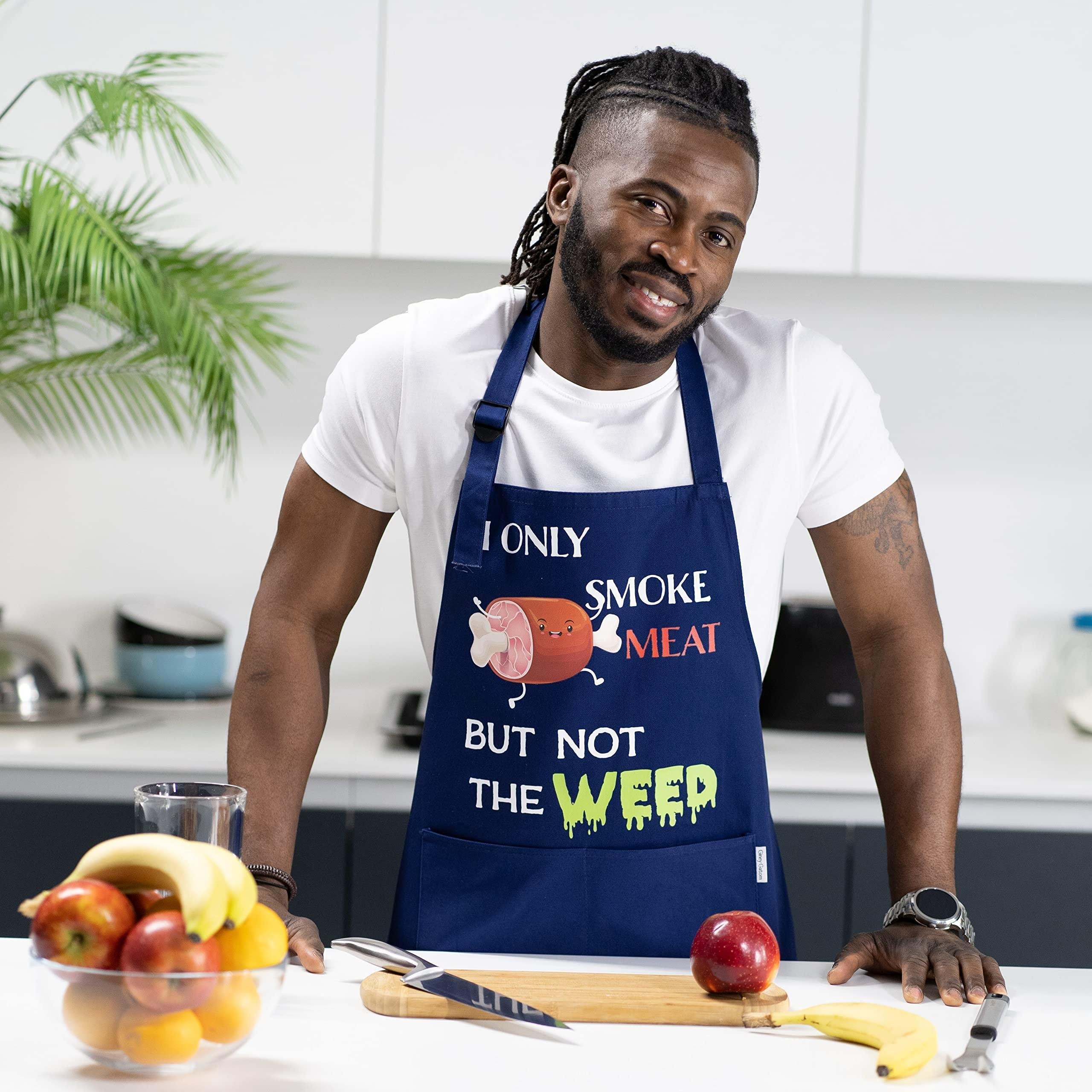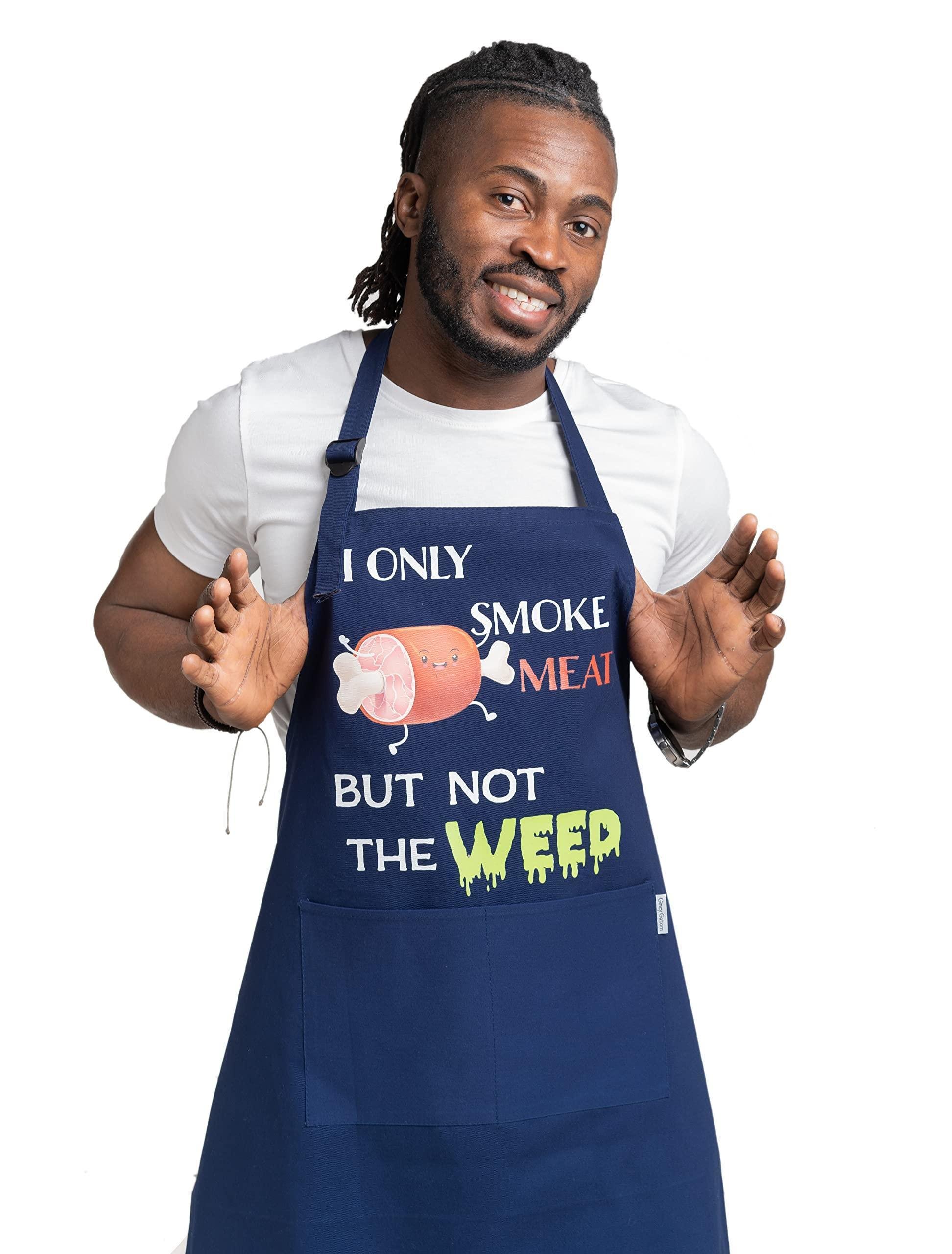2.function and comfort - smoke meat not weed marijuana apron has adjustable neck and waist straps, which makes it universal for any size and suits both men and women. mens cooking apron funny comes with 2 large pockets, which are convenient for carrying kitchen utensils while baking a pie or barbequing.