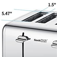 1.5" EXTRA-WIDE 4-SLOT TOASTER: Extra Wide 4-slice Toaster for you, toasting thin bread, thick bagel, English Muffin with Easy!