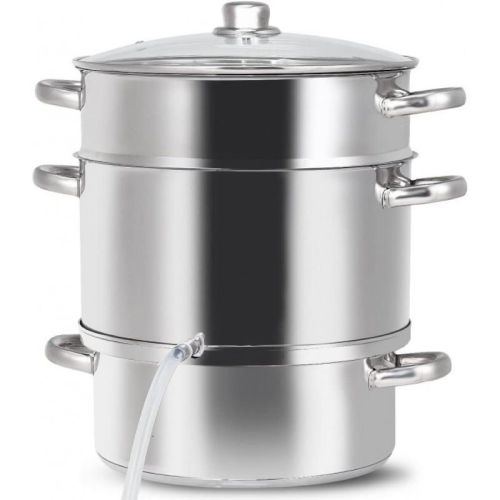 Versatile Usage: The fruit or vegetable steamer can be used for making fresh juice and using the natural juice to make a variety of jelly; syrup; nectar; or to store as concentrate. Rubber hose with clamp for control juice outflow. Three pots can also be used separately to play their function. Combing with top colander and bottom pot; you can steam your favorite food. The bottom steam pot can be separately used to cook delicious soup. Colander can be used for washing for making veggies or spaghetti.