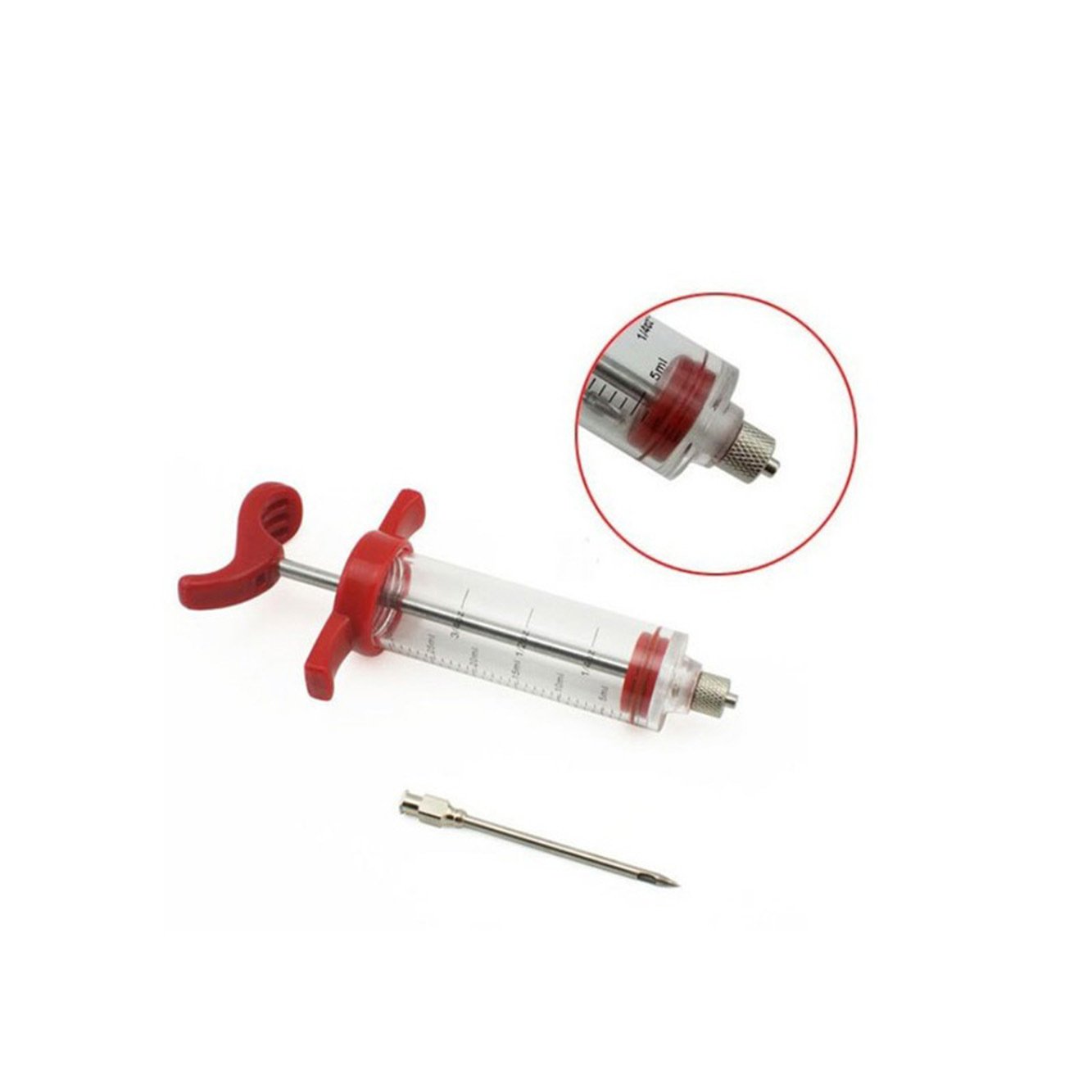 1.Easy to One-Hand Use & Dishwasher Safe - ergonomically designed for one-hand injecting handles; graduated injection chamber: 1-oz/30ml capacity measurement markings in ml and oz up the side; 3" sturdy seasoning injector needle with hole for deep penetration and perfect sauce distribution with liquid