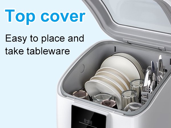 4.Practical Design: LED touch screen display is angled to face you, increasing visibility and ease of use. The transparent big glass window so that you can watch the food stains get cleaned off your dishes in real-time.