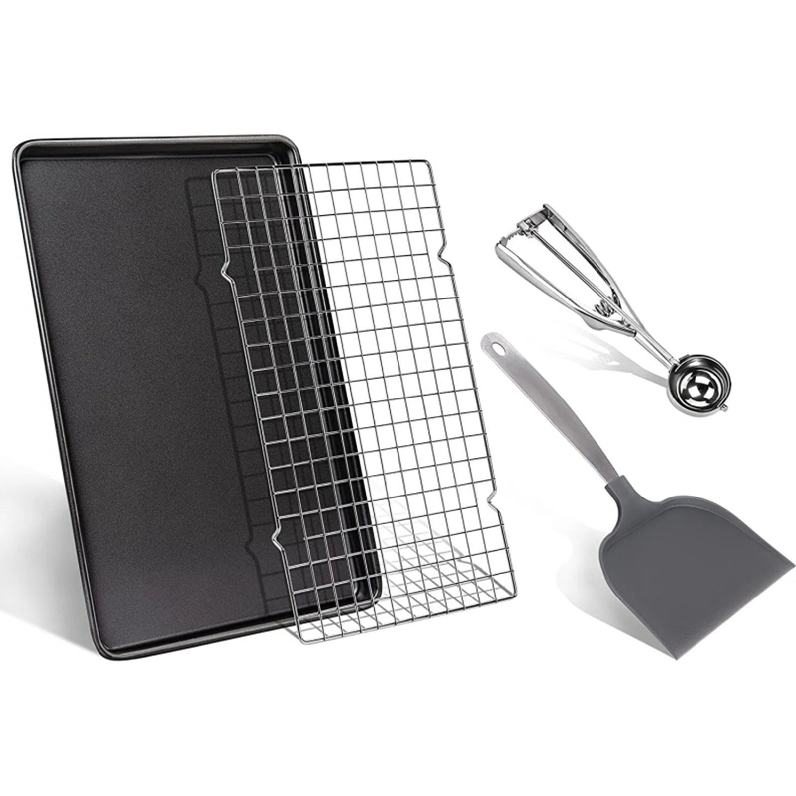 1.Nonstick cookie baking sheet with rack will be your go-to for all your baking gadgets, from baking batches of cookies to making sheet pan dinners, we've put together everything you could possibly need