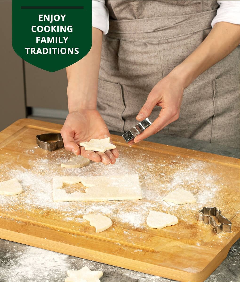 This tray enables a range of heavy-duty meal prep functions. Count on the juice grooves to collect all the liquids; stop spills; and prevent cross-contamination of any foods. Great for cooking and baking as its wide face lets you roll out the dough like a Masterchef.