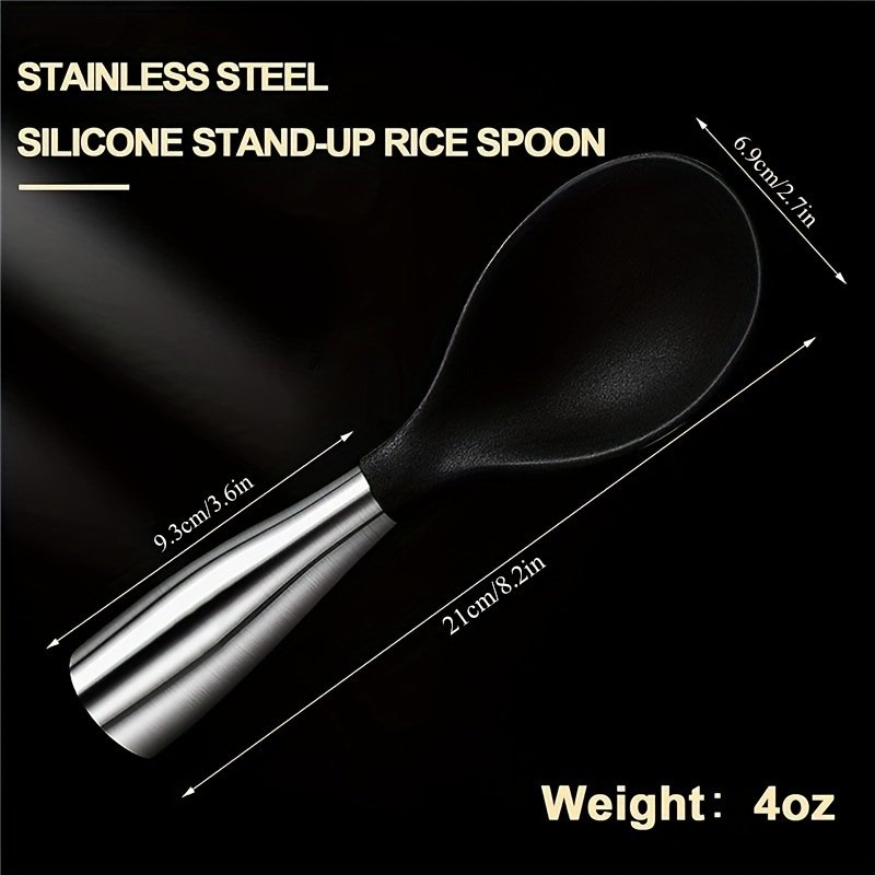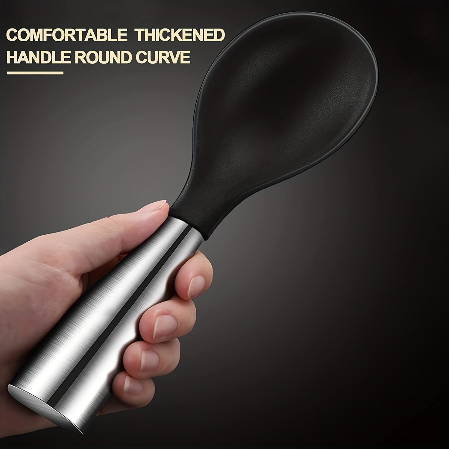 Rice Paddle; Silicone Standing Rice Spoon; Stainless Steel Handle Rice Scooper; Round Edge Not Rust Rice Serving Spoon; Non-Stick Rice Spatula Kitchen