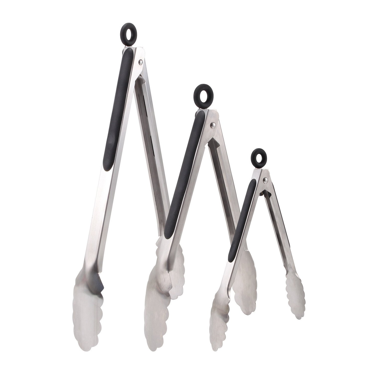 Home > Stainless Steel Kitchen Tongs Set of 3, Locking Metal Food Tongs