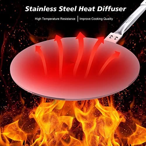 1.Heat Diffuser for Gas Stove: Ideal kitchen gadget for stove top no matter how small the pan is. The long heat proof handle make it easy for you to use it without any risk of burning yourself. And you can also hang it next to your stove for easy and quick access.