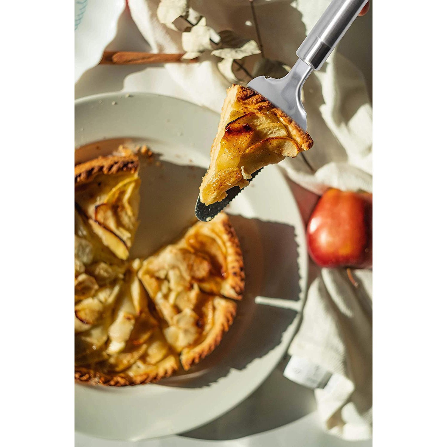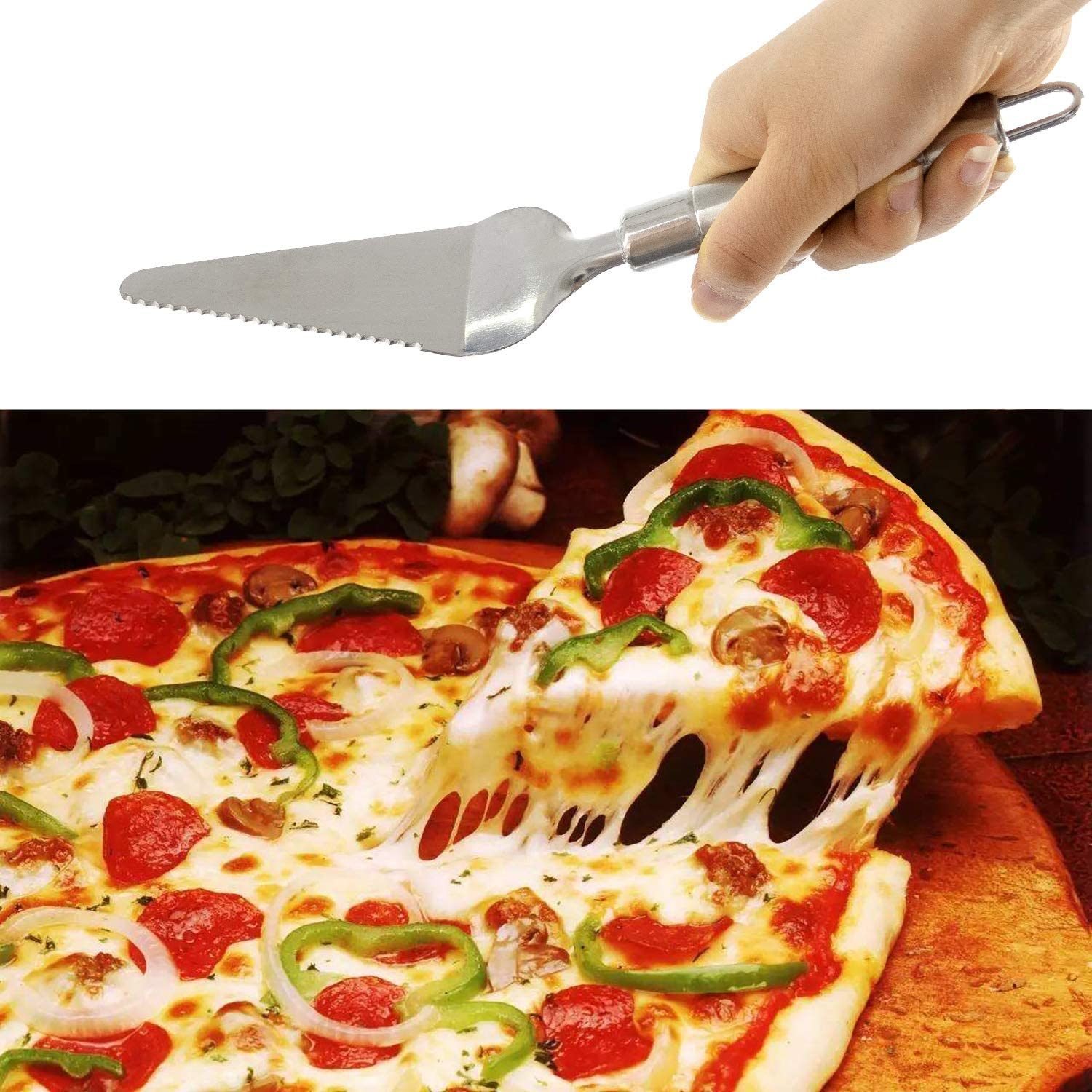 1.FINELY SERRATED EDGE is sharp enough to cut pie slices without damaging the delicate pastry. This dual purpose kitchen accessory is the only tool you need to serve and slice pies, cakes and lasagna.
